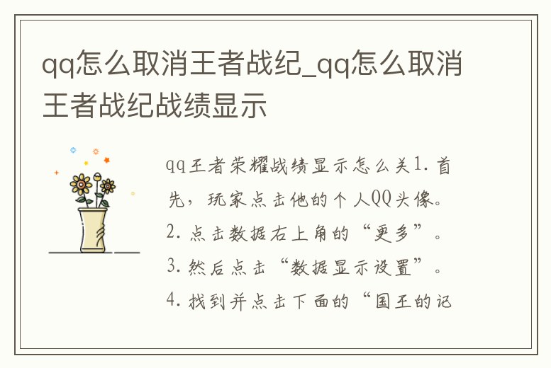 qq怎么取消王者戰(zhàn)紀_qq怎么取消王者戰(zhàn)紀戰(zhàn)績顯示