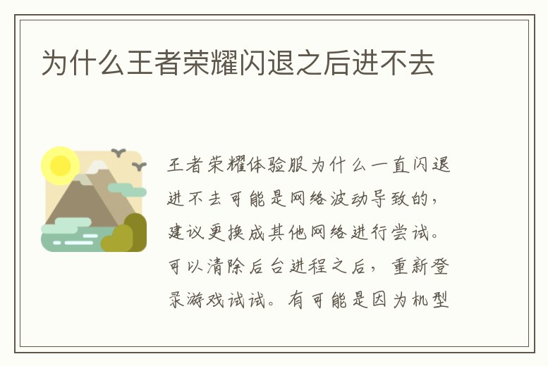 王者榮耀體驗服為什么一直閃退進不去可能是網(wǎng)絡波動導致的,建議更換成其他網(wǎng)絡進行嘗試。可以清除后臺進程之后,重新登錄游戲試試。有可能是因為機型不適配導致的,建議更換設備或者將設備系統(tǒng)升級到最新。如果上述方法試過之后還是閃退的話建