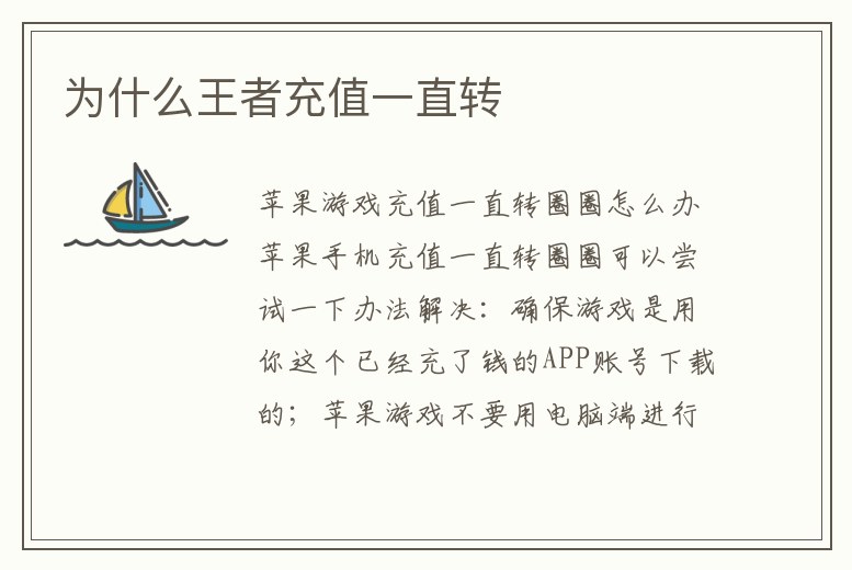 蘋果手機充值一直轉圈圈可以嘗試一下辦法解決:確保游戲是用你這個已經充了錢的APP賬號下載的;蘋果游戲不要用電腦端進行下載,否則會無法充值;把當前的這個游戲卸載了,用現(xiàn)在的賬號到APP商城下載最新的。