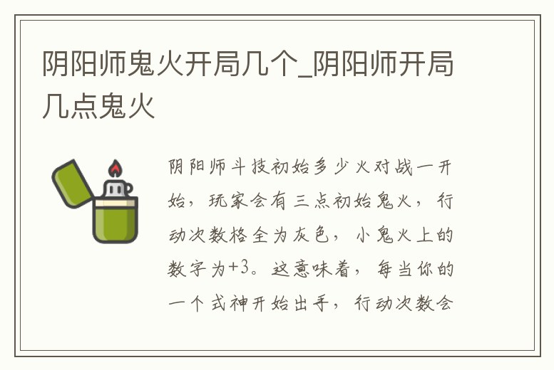 陰陽師鬼火開局幾個_陰陽師開局幾點鬼火