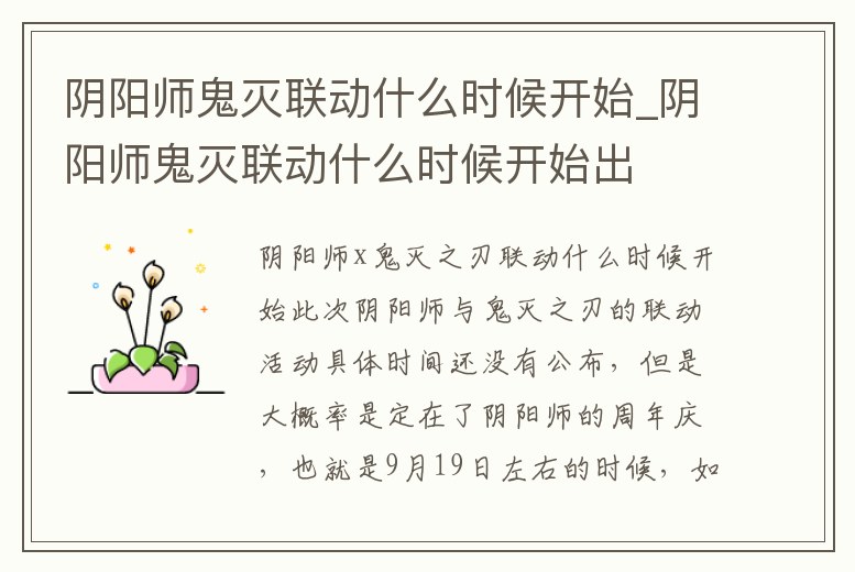 此次陰陽師與鬼滅之刃的聯動活動具體時間還沒有公布,但是大概率是定在了陰陽師的周年慶,也就是9月19日左右的時候,如果真的在這個時間進行聯動那么大概在9月的上旬官方就會放出消息了,所以大家再耐心等待一段時間就可以。