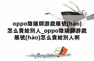 - oppo陰陽師游戲賬號(hào)怎么賣給別人_oppo陰陽師游戲賬號(hào)怎么賣給別人啊