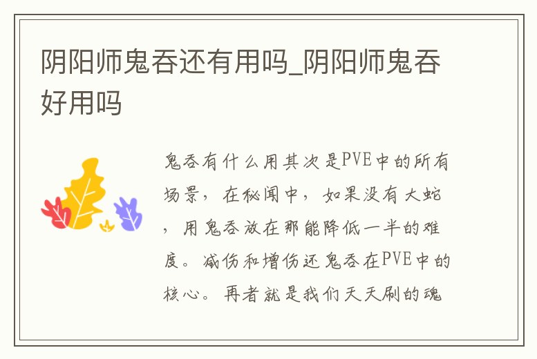 陰陽師鬼吞還有用嗎_陰陽師鬼吞好用嗎