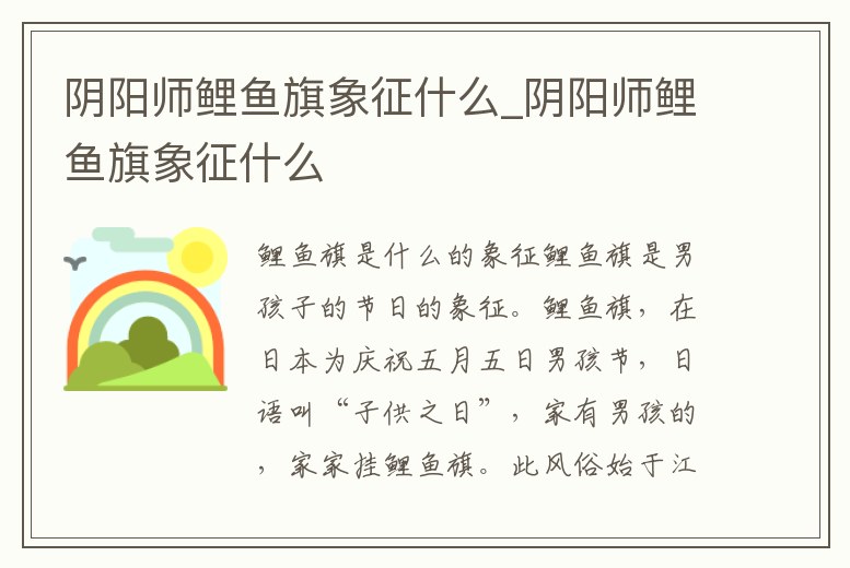 陰陽師鯉魚旗象征什么_陰陽師鯉魚旗象征什么