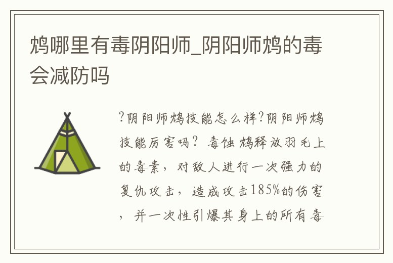 鴆哪里有毒陰陽師_陰陽師鴆的毒會減防嗎