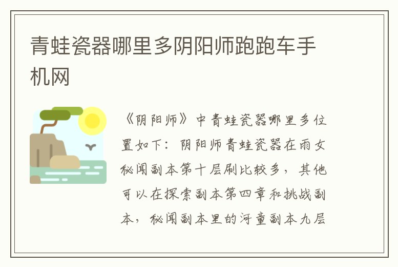 青蛙瓷器哪里多陰陽師跑跑車手機網(wǎng)