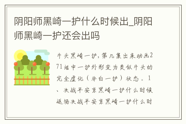 陰陽師黑崎一護什么時候出_陰陽師黑崎一護還會出嗎