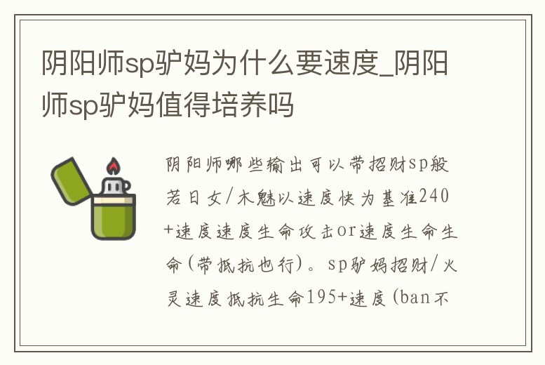 陰陽師sp驢媽為什么要速度_陰陽師sp驢媽值得培養嗎