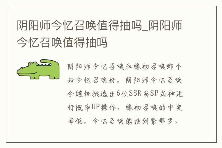 陰陽師今憶召喚值得抽嗎_陰陽師今憶召喚值得抽嗎
