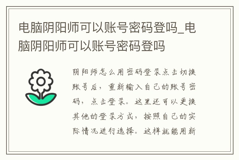 電腦陰陽師可以賬號密碼登嗎_電腦陰陽師可以賬號密碼登嗎