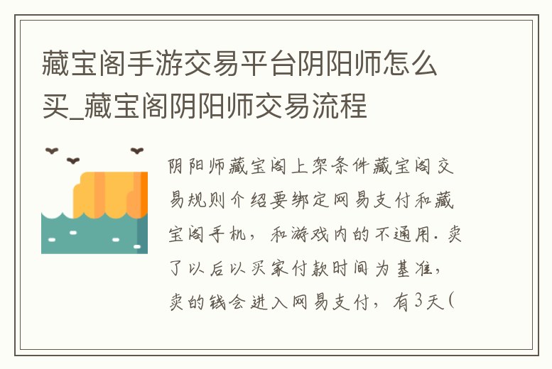 藏寶閣手游交易平臺陰陽師怎么買_藏寶閣陰陽師交易流程