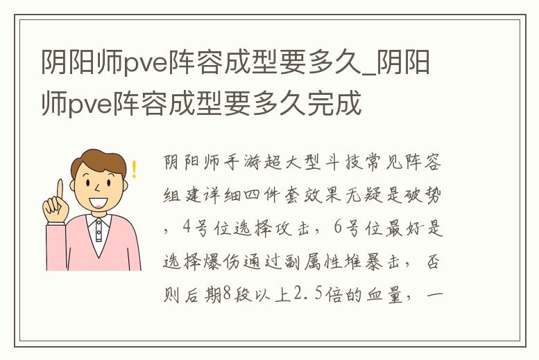 陰陽師pve陣容成型要多久_陰陽師pve陣容成型要多久完成