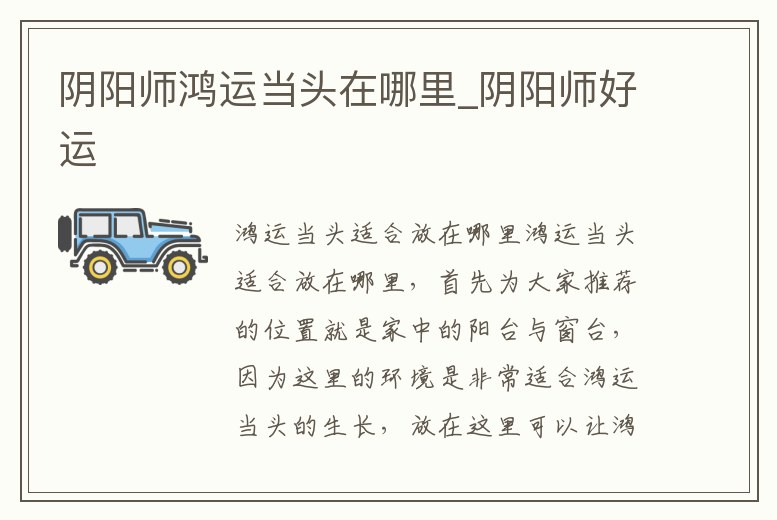 一般來說,鴻運當頭應該擺放在家里的正中央,這樣可以讓鴻運的能量更好地活躍,從而讓家里的人都能夠受益。此外,鴻運當頭的擺放位置也要考慮到家里的風水,比如說,如果家里的風水是坐北朝南,那么鴻運當頭應該擺放在家里的。