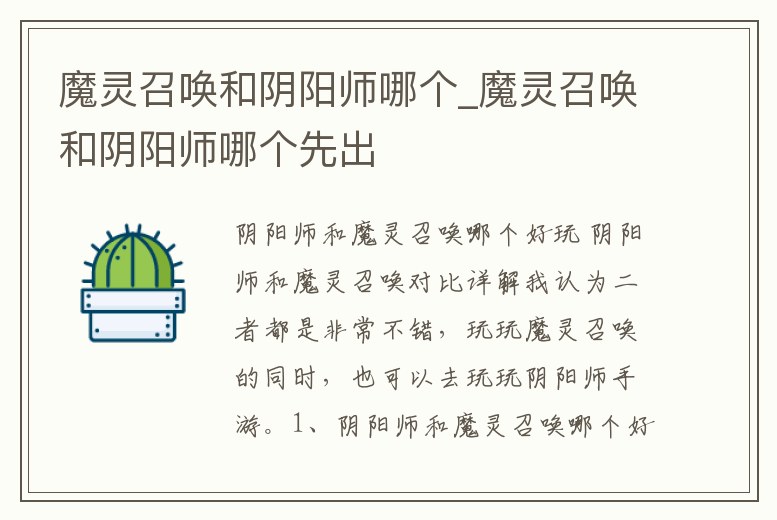 魔靈召喚和陰陽師哪個_魔靈召喚和陰陽師哪個先出