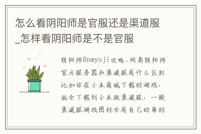 怎么看陰陽師是官服還是渠道服_怎樣看陰陽師是不是官服