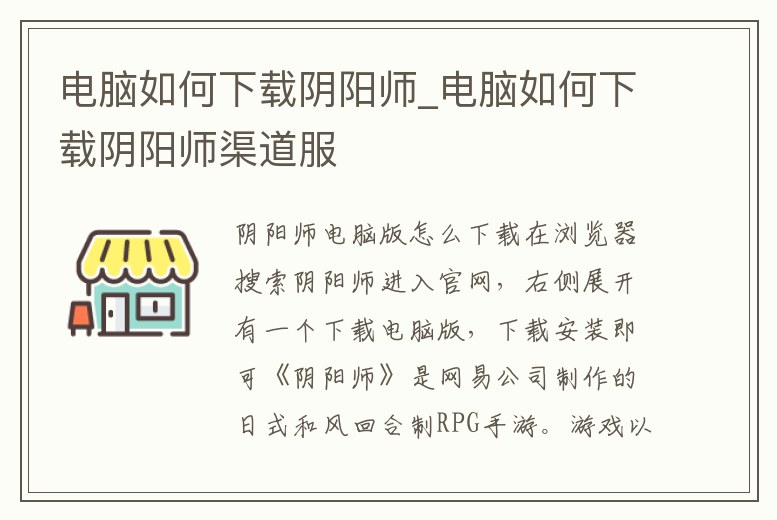 電腦如何下載陰陽師_電腦如何下載陰陽師渠道服