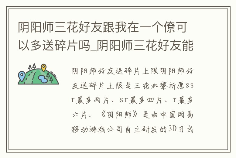 陰陽師三花好友跟我在一個僚可以多送碎片嗎_陰陽師三花好友能干嘛