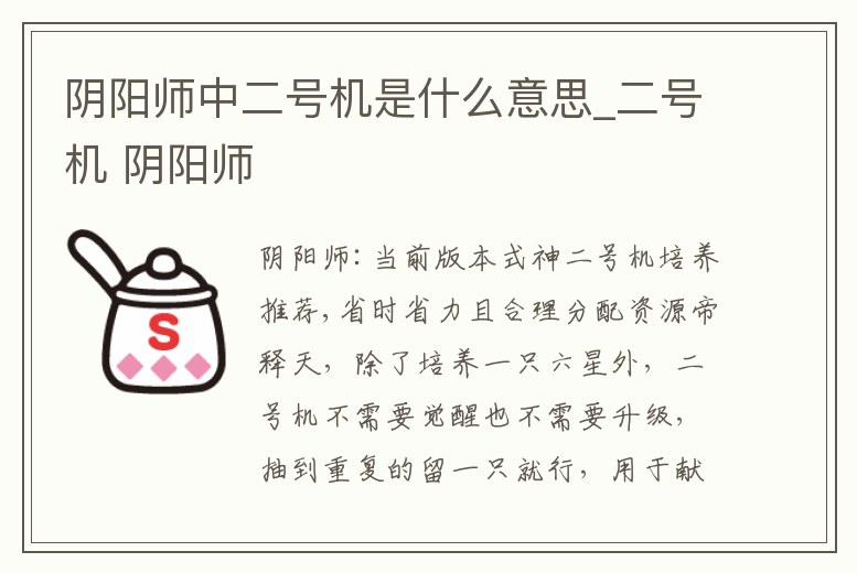陰陽師中二號機是什么意思_二號機 陰陽師