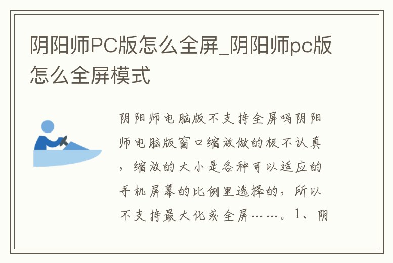 陰陽師PC版怎么全屏_陰陽師pc版怎么全屏模式