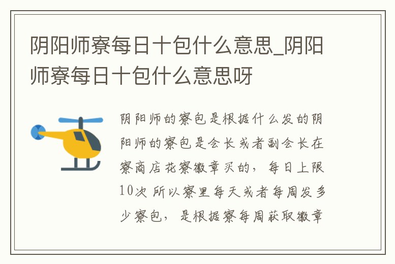 陰陽師寮每日十包什么意思_陰陽師寮每日十包什么意思呀