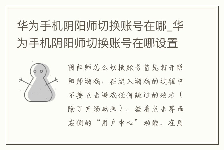 華為手機陰陽師切換賬號在哪_華為手機陰陽師切換賬號在哪設置
