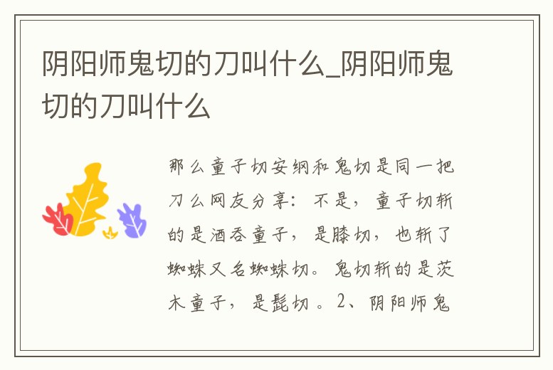 陰陽師鬼切的刀叫什么_陰陽師鬼切的刀叫什么
