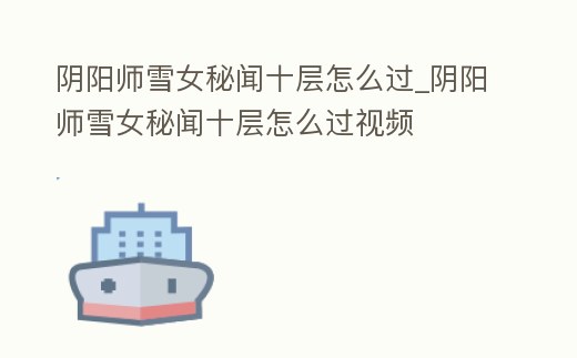 陰陽師雪女秘聞十層怎么過_陰陽師雪女秘聞十層怎么過視頻