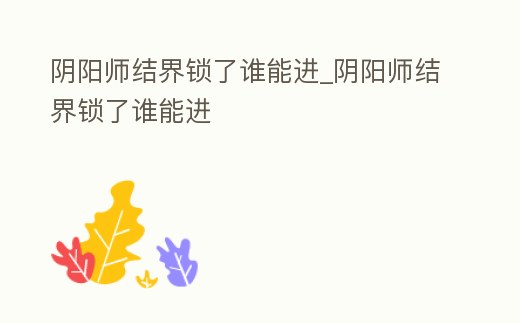 陰陽師結界鎖了誰能進_陰陽師結界鎖了誰能進