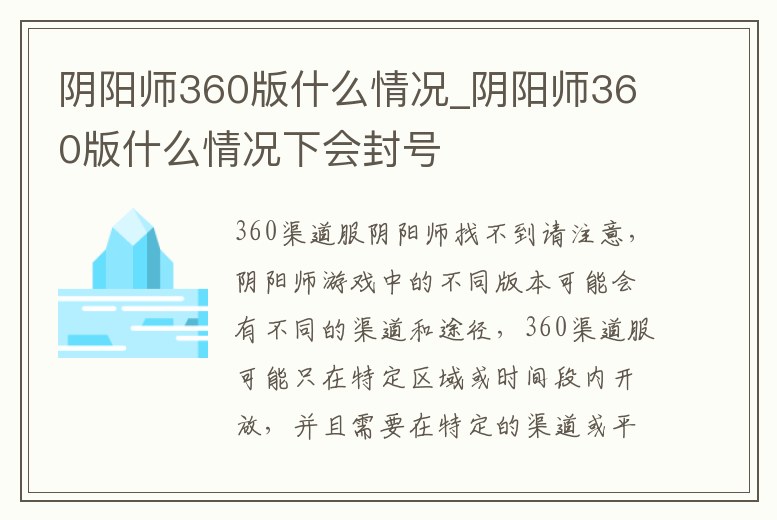 陰陽師360版什么情況_陰陽師360版什么情況下會封號