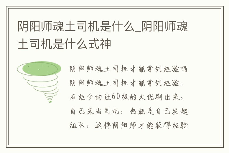 陰陽師魂土司機(jī)是什么_陰陽師魂土司機(jī)是什么式神