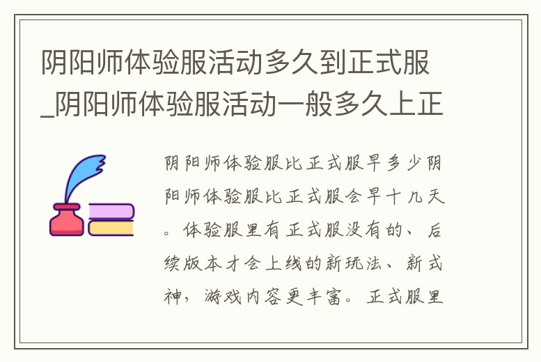 陰陽師體驗服活動多久到正式服_陰陽師體驗服活動一般多久上正式服
