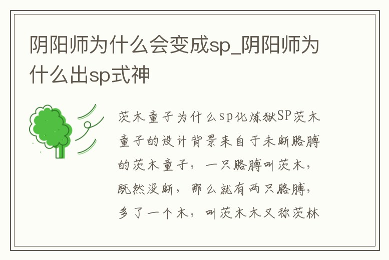 陰陽師為什么會變成sp_陰陽師為什么出sp式神