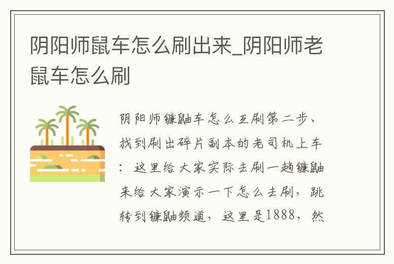 陰陽師鼠車怎么刷出來_陰陽師老鼠車怎么刷