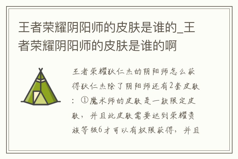 王者榮耀陰陽師的皮膚是誰的_王者榮耀陰陽師的皮膚是誰的啊