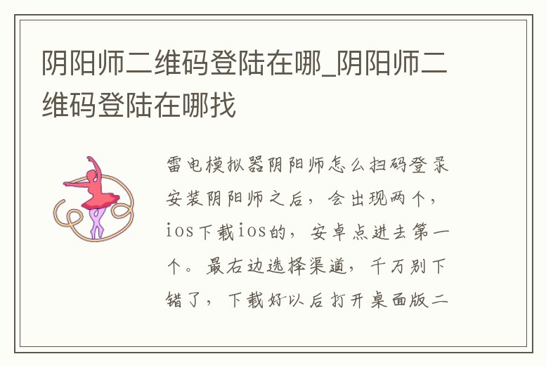 雷電模擬器陰陽師怎么掃碼登錄安裝陰陽師之后,會出現兩個,ios下載ios的,安卓點進去第一個。最右邊選擇渠道,千萬別下錯了,下載好以后打開桌面版二維碼。用模擬器賬號密碼登錄然后掃碼登錄桌面版,選那個實時