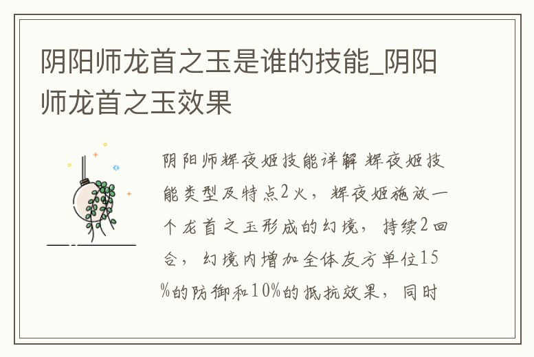 陰陽師龍首之玉是誰的技能_陰陽師龍首之玉效果