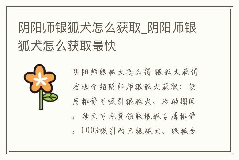 陰陽師銀狐犬怎么獲取_陰陽師銀狐犬怎么獲取最快