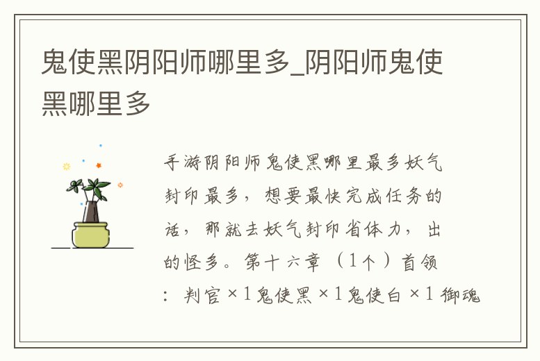 鬼使黑陰陽師哪里多_陰陽師鬼使黑哪里多
