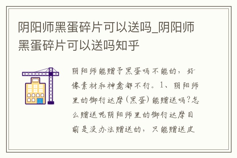 陰陽師黑蛋碎片可以送嗎_陰陽師黑蛋碎片可以送嗎知乎