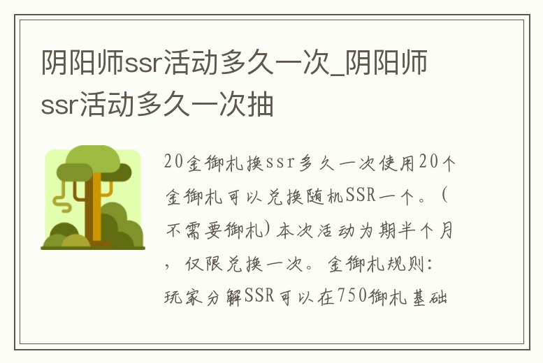 陰陽師ssr活動多久一次_陰陽師ssr活動多久一次抽