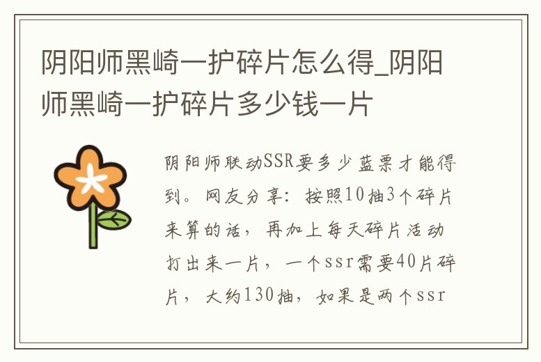 陰陽師黑崎一護碎片怎么得_陰陽師黑崎一護碎片多少錢一片