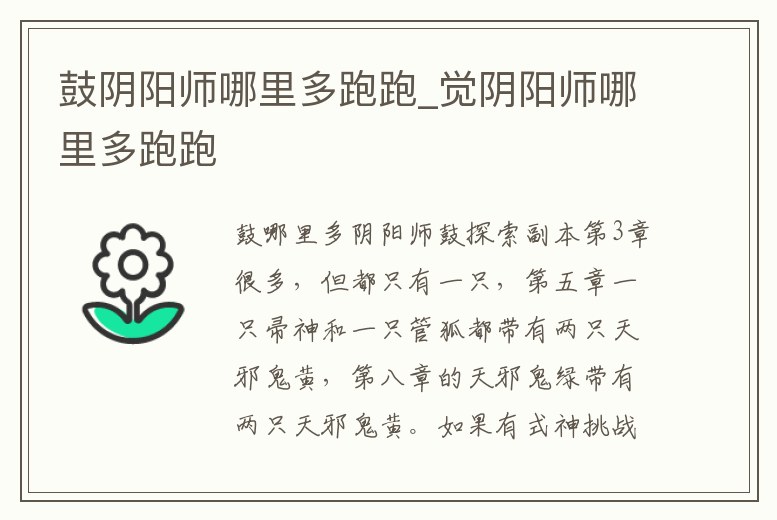 鼓陰陽師哪里多跑跑_覺陰陽師哪里多跑跑