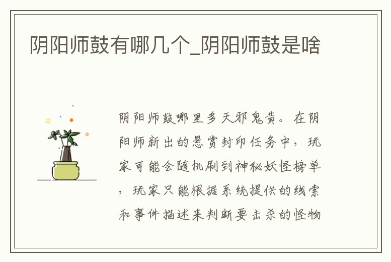 陰陽師鼓有哪幾個_陰陽師鼓是啥