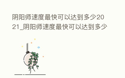 陰陽師速度最快可以達到多少2021_陰陽師速度最快可以達到多少2020