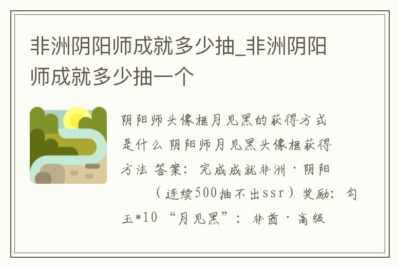 非洲陰陽師成就多少抽_非洲陰陽師成就多少抽一個