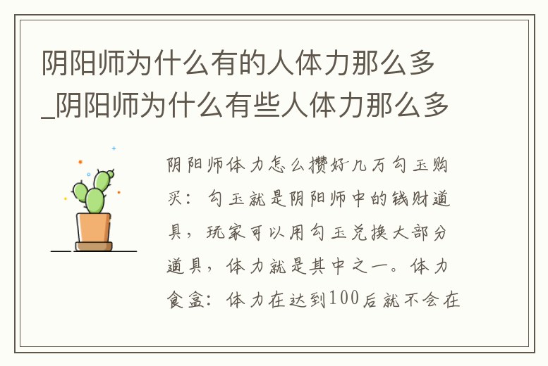 陰陽師為什么有的人體力那么多_陰陽師為什么有些人體力那么多