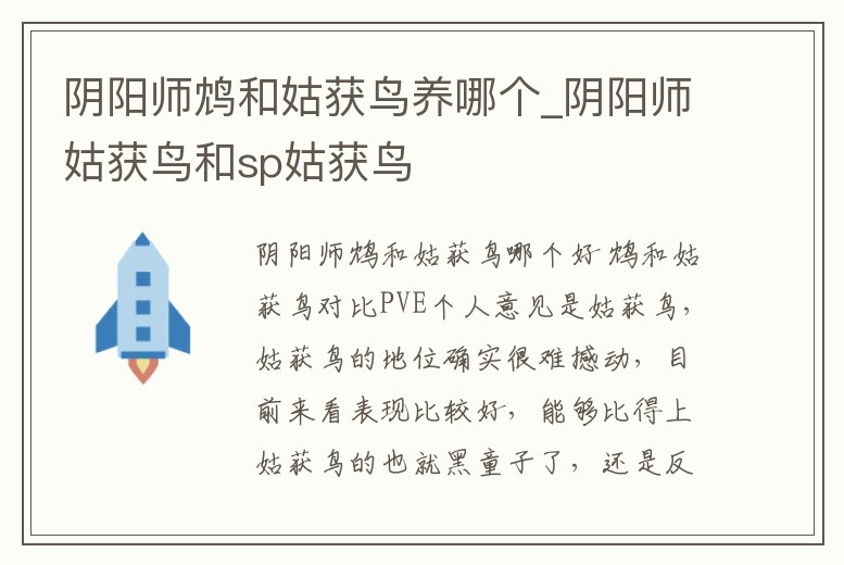 陰陽師鴆和姑獲鳥養哪個_陰陽師姑獲鳥和sp姑獲鳥