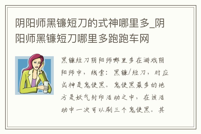 陰陽師黑鐮短刀的式神哪里多_陰陽師黑鐮短刀哪里多跑跑車網(wǎng)