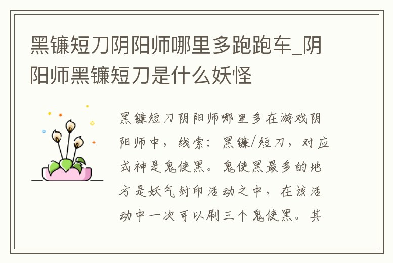 黑鐮短刀陰陽師哪里多跑跑車_陰陽師黑鐮短刀是什么妖怪
