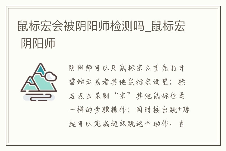 鼠標宏會被陰陽師檢測嗎_鼠標宏 陰陽師